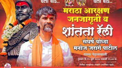 केज:- ११ जुलै या तारखेला बीड येथे संघर्ष योद्धा मनोज जरांगे पाटील यांच्या नेतृत्वाखाली सकल मराठा समाजाकडुन शांतता मोर्चा काढण्यात येणार…