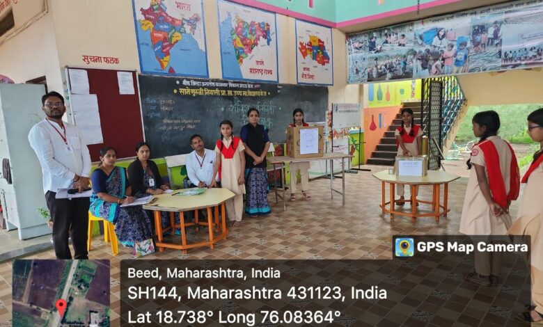 केज :- विद्यार्थ्यांना लोकशाही पद्धतीत मतदानाचे महत्व व प्रत्यक्ष माहिती व्हावी या करिता भारतीय लोकशाही प्रणाली प्रमाणे शालेय विद्यार्थी प्रतिनिधीची निवडणूक सानेगुरुजी निवासी विद्यालय केज येथे पार पडली .