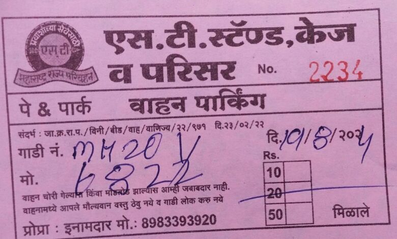केज :- केज बसस्थानक हे गुन्हेगाराचे आश्रयस्थान बनलेले आहे त्यातच आता त्यामधे भर पडुन पे पार्किगच्या नावाखाला प्रवाश्याची लुट करणारे गुन्हेगार  प्रवृतीचे आसल्याचे कळते जर एसटी प्रशासनाने पार्किंग चा लिलाव काढला आसेल तर त्यांनी पार्किंगच्या पावत्या ह्या अधिकृत आसणे हे अनिवार्य आसले पाहीजे येथे पावत्या ते देत आहे त्या अधिकृतच नाहीत त्यावर पावतीवर सिक्का किंवा सहीच नाही यांचा लिलाव जा.क्र.रा.प.विनी/बीड/वाह/वाणीज्य/२२/९७१ ता.२३/२/२२ रोजी काढलेला दिसत आहे हा लिलाव काढुन तीन वर्ष लोटले मध्यंतरी पार्किंग जेमतेम महिना दोन महिने चालु आसेल तक्रारी झाली ही बंद मग हा लिलाव कायद्याने झाला आसेल तर यामधे पार्किंग बंद का झाली होती यांची पन चौकशी झाली पाहिजे जर ही पे पार्किंग बेकायदेशीर आसेल तर या लोकावर कार्यवाहीच केली पाहीजे असा सुर प्रवाश्यामधे दिसत आहे
