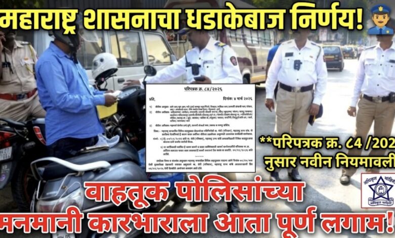मुंबई: महाराष्ट्र राज्यातील वाहनचालकांसाठी एक अत्यंत महत्त्वाची आणि दिलासादायक बातमी समोर आली आहे. रस्त्यावर वाहने अडवून प्रलंबित ई-चलन दंड भरण्यासाठी चालकांवर दबाव टाकणाऱ्या आणि उद्धट वर्तवणूक करणाऱ्या वाहतूक पोलिसांना राज्य सरकारने आता लगाम घातला आहे. अपर पोलीस महासंचालक (महामार्ग सुरक्षा पथक) यांनी यासंदर्भात परिपत्रक क्र. ८४/२०२६ जारी करून सर्व पोलीस आयुक्तालय आणि अधीक्षकांना कडक निर्देश दिले आहेत.