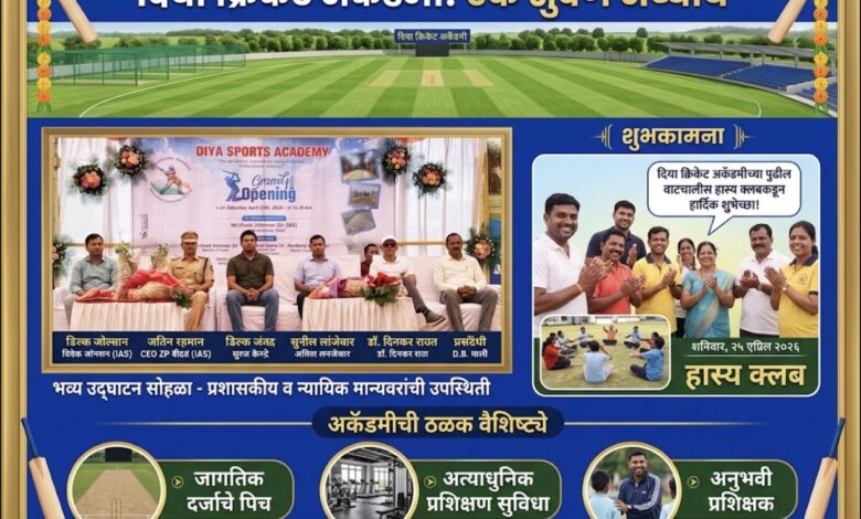 या कार्यक्रमासाठी परिसरातील नागरिक, क्रीडा प्रेमी आणि तरुण खेळाडू मोठ्या संख्येने उपस्थित होते. ‘दिया क्रिकेट अकॅडमी’मुळे केजमधून भविष्यात उत्तम क्रिकेटपटू घडतील, असा विश्वास व्यक्त केला जात आहे